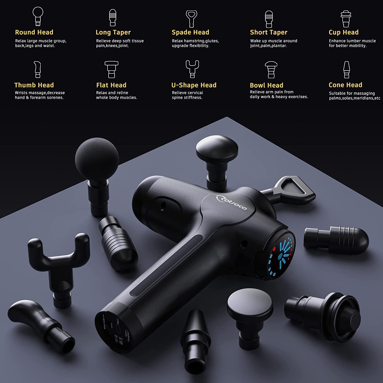 - CUSTOMIZABLE COMFORT: With 12 interchangeable heads, you can target every muscle group with the perfect tool for the job.